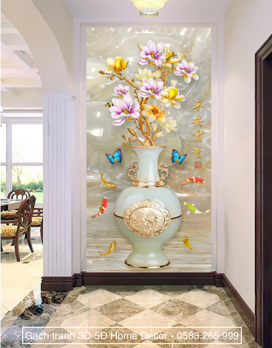 Tranh gạch men 5D (3d) ốp tường để trang trí nhà đẹp và tạo điểm nhấn cho những bức tường trở nên bừng sáng và đẹp đẽ mà không loại vật liệu nào có thể sánh bằng. Gạch tranh 5D được sản xuất bởi công nghệ hiện đại in ấn những bức tranh đẹp được thiết kế sẵn theo nhiều chủ đề hoặc bức hình của gia đình bạn, miễn là hình ảnh có độ sắc nét cao- Kết quả khi in xong và hoàn thiện trở thành những bức tranh gạch 5D bóng bẩy, tiện lợi sử dụng ốp tường trang trí cho ngôi nhà của bạn thêm xinh.